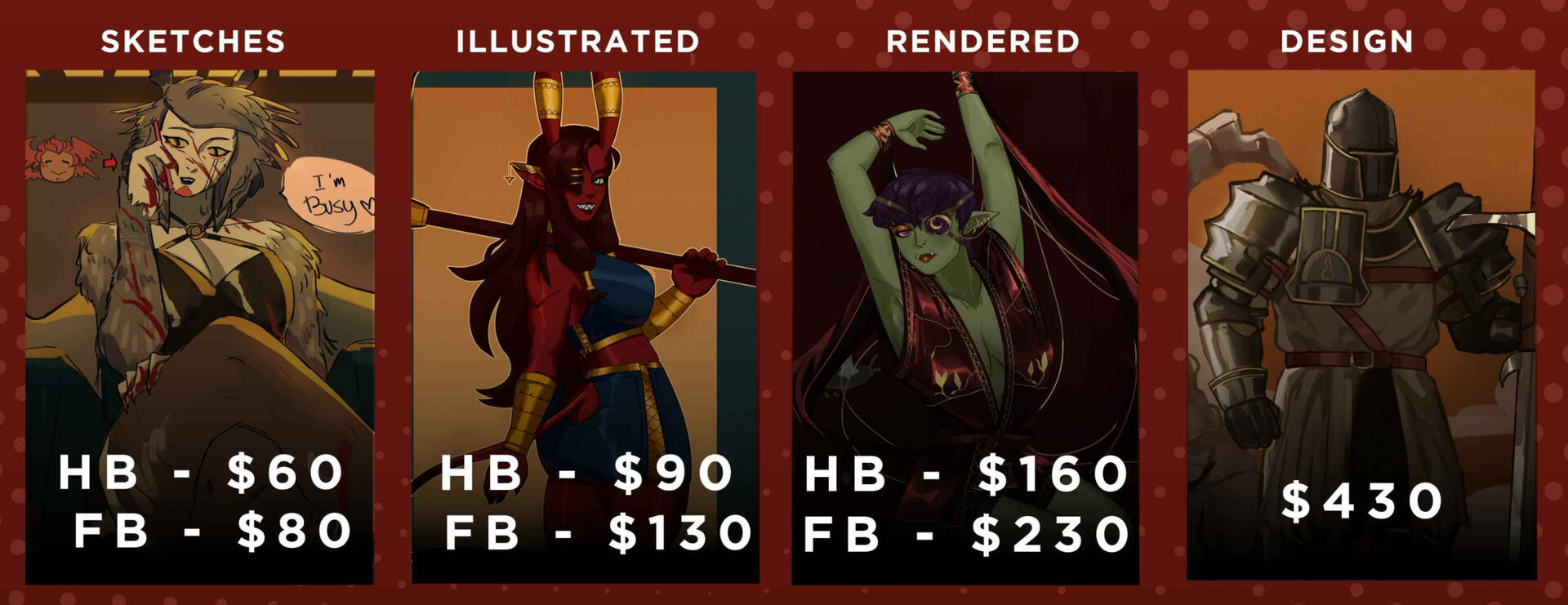 FB - $80Illustrated - Majority of it is lineart and simple cell shading.HB - $90